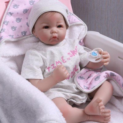 * Material: Silicone vinyl head,3/4 silicone vinyl limbs with stuffed PP cotton body, and is very soft to gentle touch. Limbs and head can be active, it can sit or lie, Can’t stand, Can’t enter the water to take a shower.