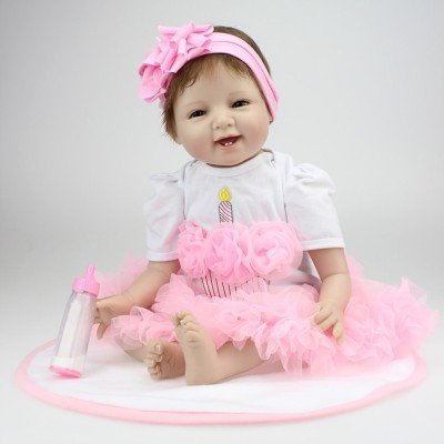 * Material: Silicone vinyl head,3/4 silicone vinyl limbs with stuffed PP cotton body, and is very soft to gentle touch. Limbs and head can be active, it can sit or lie, Can’t stand, Can’t enter the water to take a shower.